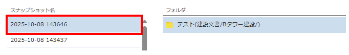 3. マージファイルの作成に失敗した「スナップショット名」を選択します。